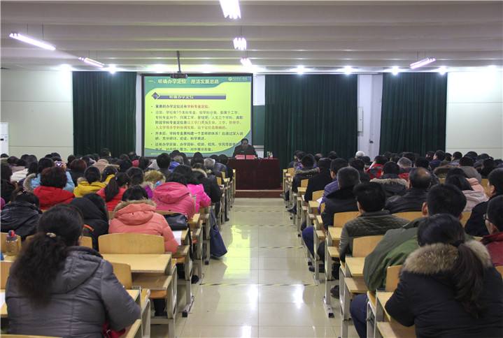 一是明确办学定位,树立先进理念,理清发展思路。他从办学类型、办学层次、人才培养目标、服务面向、学科专业等方面提出了学院办学定位的讨论方案;通过列举牛津、剑桥、哈佛、北大、清华等国内外著名高校的办学历史,说明了办学理念在高校改革发展中的先导性作用;真正实现学院的转型升级、建成合格本科院校要广泛开展思想大讨论,按照整体设计、统筹规划;突出重点、分项建设;深化改革、全面推进的工作思路开展工作。