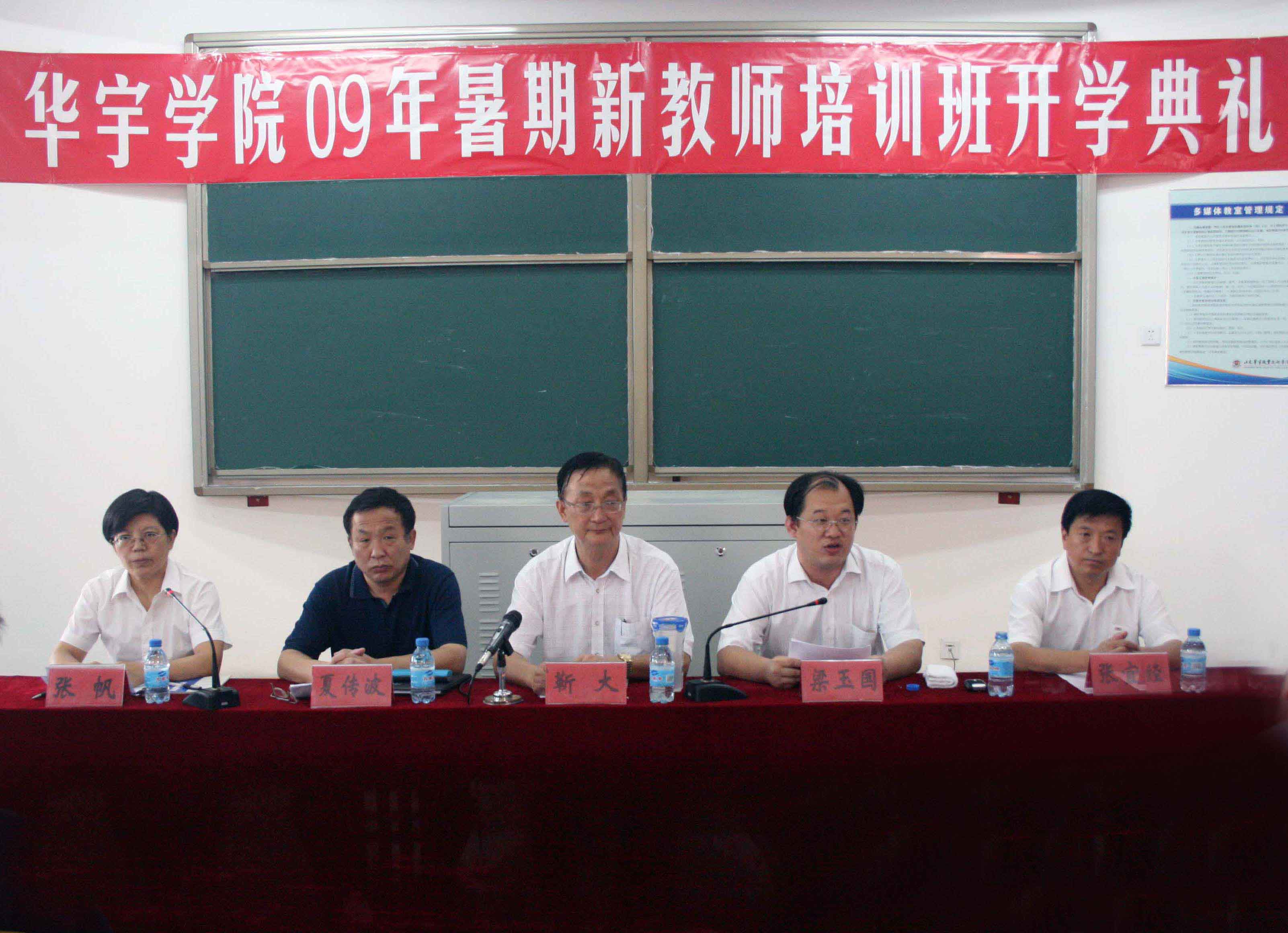 8月15日上午8:30,BetWay必威2009年新教师暑期培训班开班典礼在学院10号楼F-101多媒体教室举行,党委书记靳大、常务副院长梁玉国、副院长夏传波、院长助理张宜经等领导出席了开班仪式,仪式由学院人力资源处张帆处长主持。